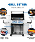 Prestige® 500 RSIB Gas Grill with Infrared Side and Rear Burner, Stainless Steel