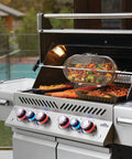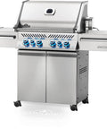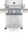 This slick grill is as impressive as its title sounds. The Prestige PRO™ 500 Propane Gas Grill with Infrared Rear and Side Burners is a professional style grill, built with high-quality, high-performance features making grilling easy and impressive. A shining stainless steel body provides durability against the elements while chrome details add a touch of luxury. Inside; the same high-quality stainless steel is used for the cooking grids, tube burners and sear plates. An industry first proximity light detects your presence and you'll know it's a Napoleon with those iconic WAVE™ cooking grids for those distinctive grill marks. Grill steak like the PROs using the high heat infrared side burner to create the perfect sear. Illuminated cooking area and interior storage, soft close doors and spacious side shelves are just a few of the features. The LED Spectrum NIGHT LIGHT™ Control Knobs have near limitless color options making night-time entertaining a breeze, and they also glow red when the gas is left on as a safety feature.
