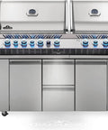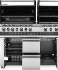 - This grill’s storage cabinet is spacious for all of your favorite BBQ accessories. Interior lights ensure you can find everything easily, while soft close doors prevent slamming and wear and tear on the cabinet doors